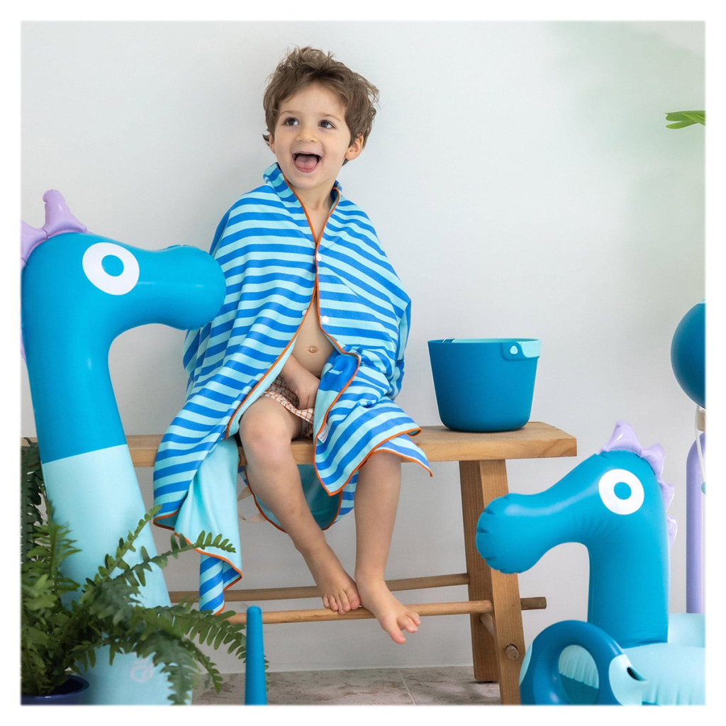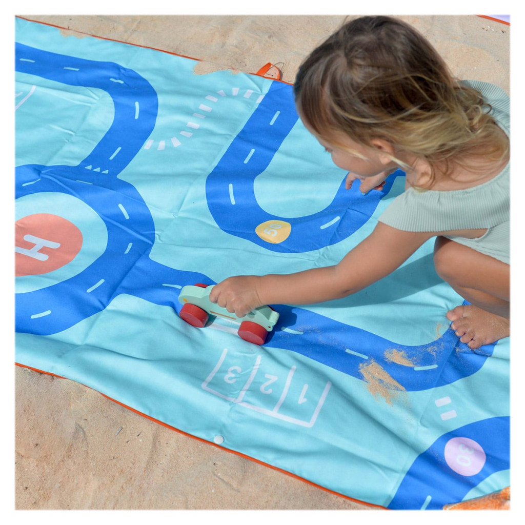 Húzd végig az ujjaidat a törölköző felületén és érezd azt a különlegesen puha textúrát, amely még a legérzékenyebb bababőrt sem irritálja. A vibráló színek és a részletgazdag utak, parkolók és körforgalmak azonnal beindítják a kicsik képzeletét. Ez a törölköző nem csak a strandon remekel: tökéletes kiegészítője a fürdőszobai rutinnak is, ha a gyerkőc nehezen jön ki a kádból. Remekül passzol a Quut többi innovatív strandjátékához és vizes kiegészítőjéhez is.