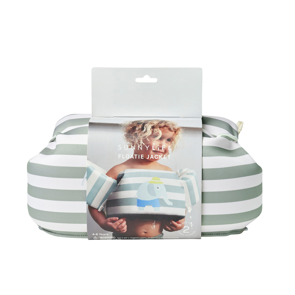 Sunnylife úszómellény karúszóval 3-6 év Eli the Elephant Green Stripe