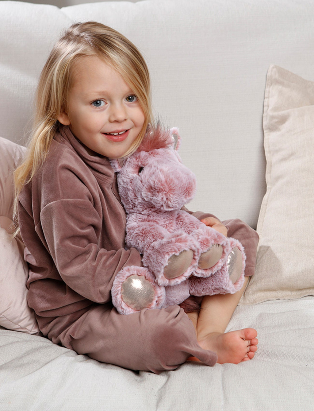 Képzeld el azt a pillanatot, amikor gyermeked először veszi a kezébe ezt a mesés lényt. Az első dolog, ami azonnal elvarázsol, az a gyönyörű pasztell rózsaszín, vastag és selymesen puha plüss bunda, amely szinte beleolvad a kezetekbe. Engla büszkén viseli csillogó ezüst szarvát és varázslatosan fénylő lábacskáit, amelyek a szobaszűrő fényben finoman megcsillanva azonnal megragadják a babák tekintetét. A dús, bolyhos sörény és a kedvesre hímzett arcocska mind gondoskodnak arról, hogy ez a figura igazi lélekmelegítő barát legyen a mindennapokban. A 30 centiméteres kialakítás tökéletesen illeszkedik a pici ölelésekhez, így a kis kezek könnyedén hurcolhatják magukkal bárhová. Tökéletes választás a Little Dutch ágyneműink mellé, hiszen az egyszarvú letisztult, pasztell színvilága csodás harmóniát alkot a modern babaszobák hangulatával.