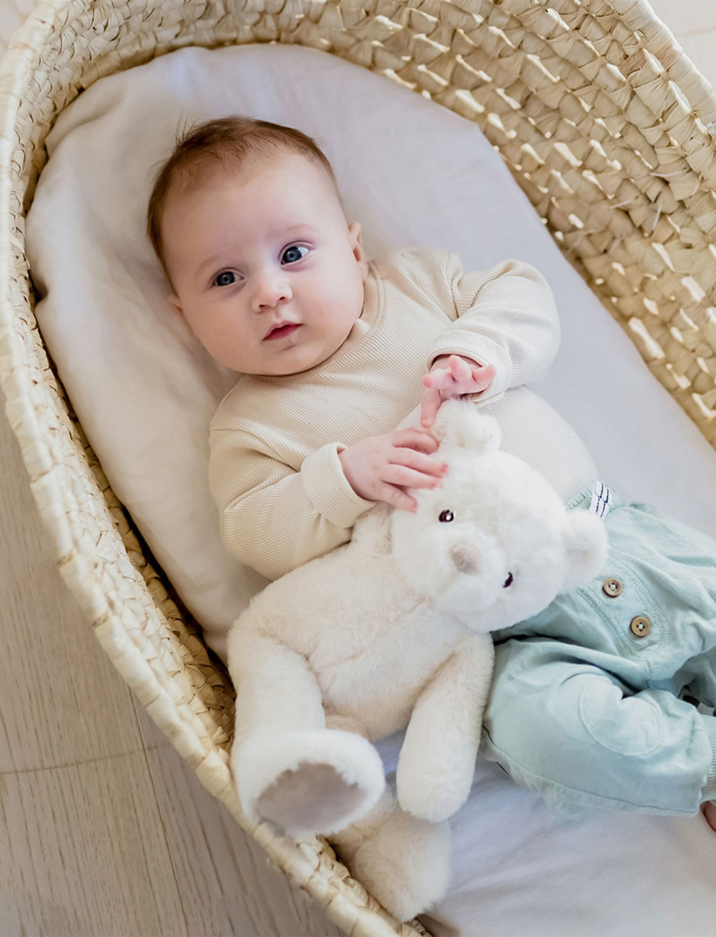 Hagyd a mackót a saját ágyadban egy-két éjszakára, mielőtt odaadnád a kisbabádnak! A prémium plüss gyorsan átveszi a te megnyugtató illatodat, így amikor a kicsi magához öleli, folyamatosan úgy érzi majd, mintha a te biztonságot adó karjaidban ringatózna.