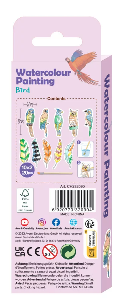 Vízzel festő kreatív könyvjelző készlet, Madarak Avenir